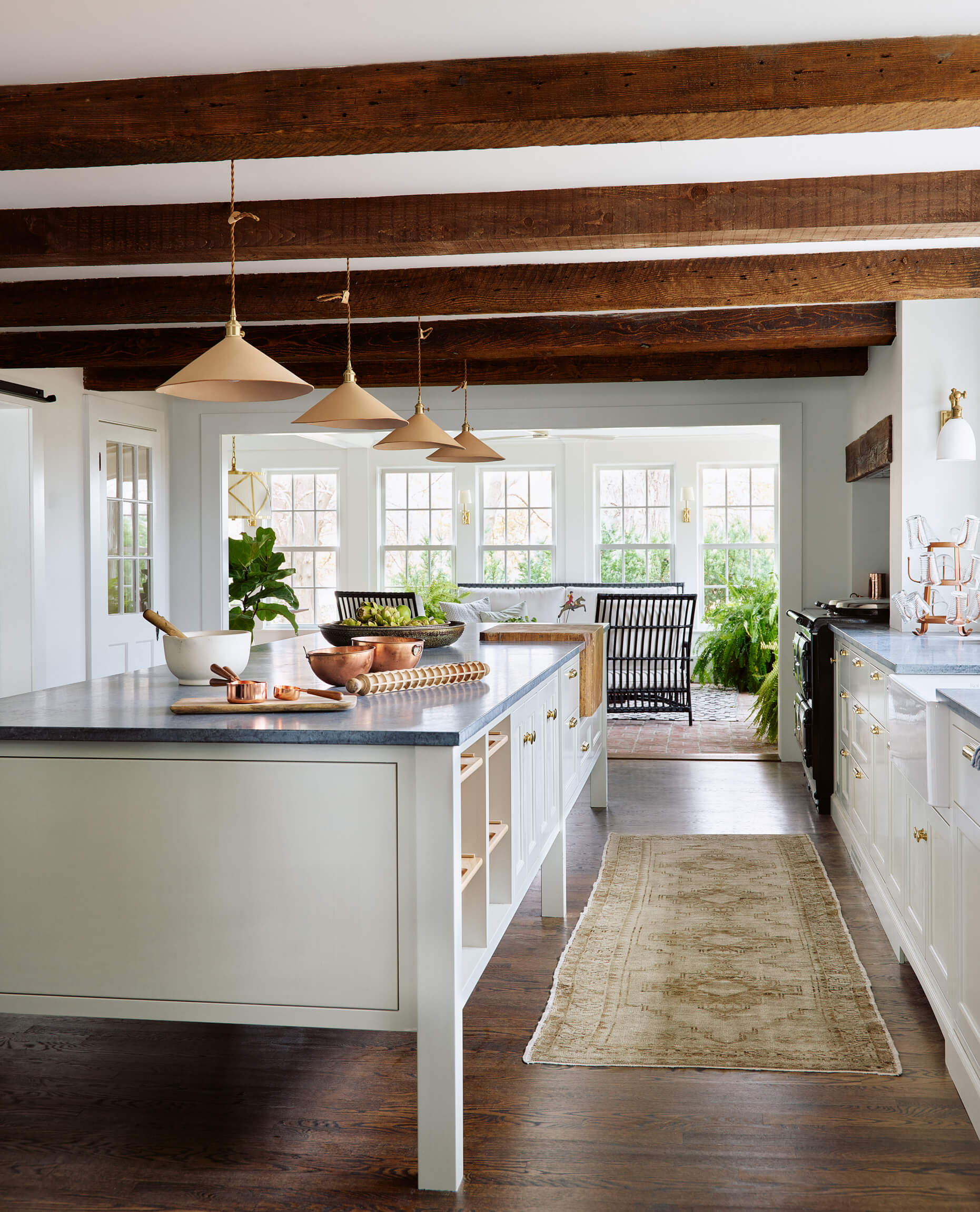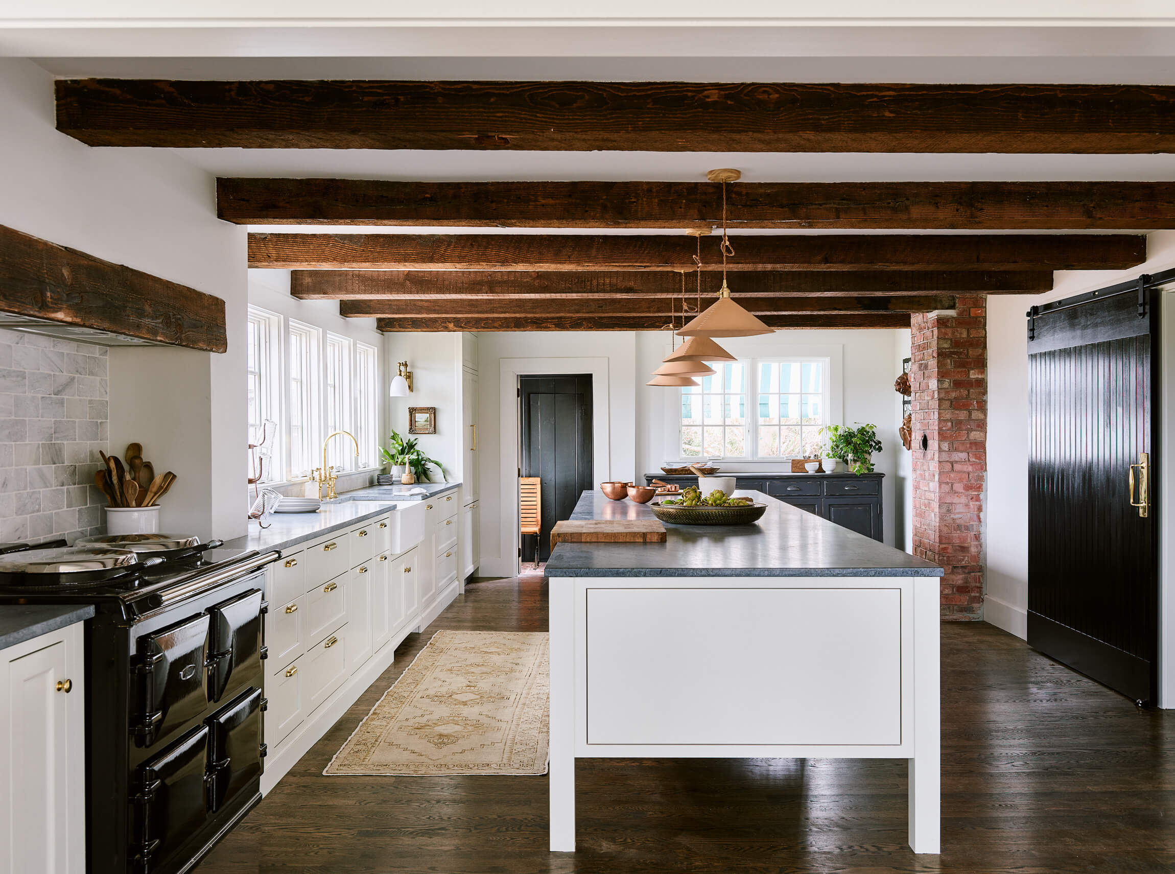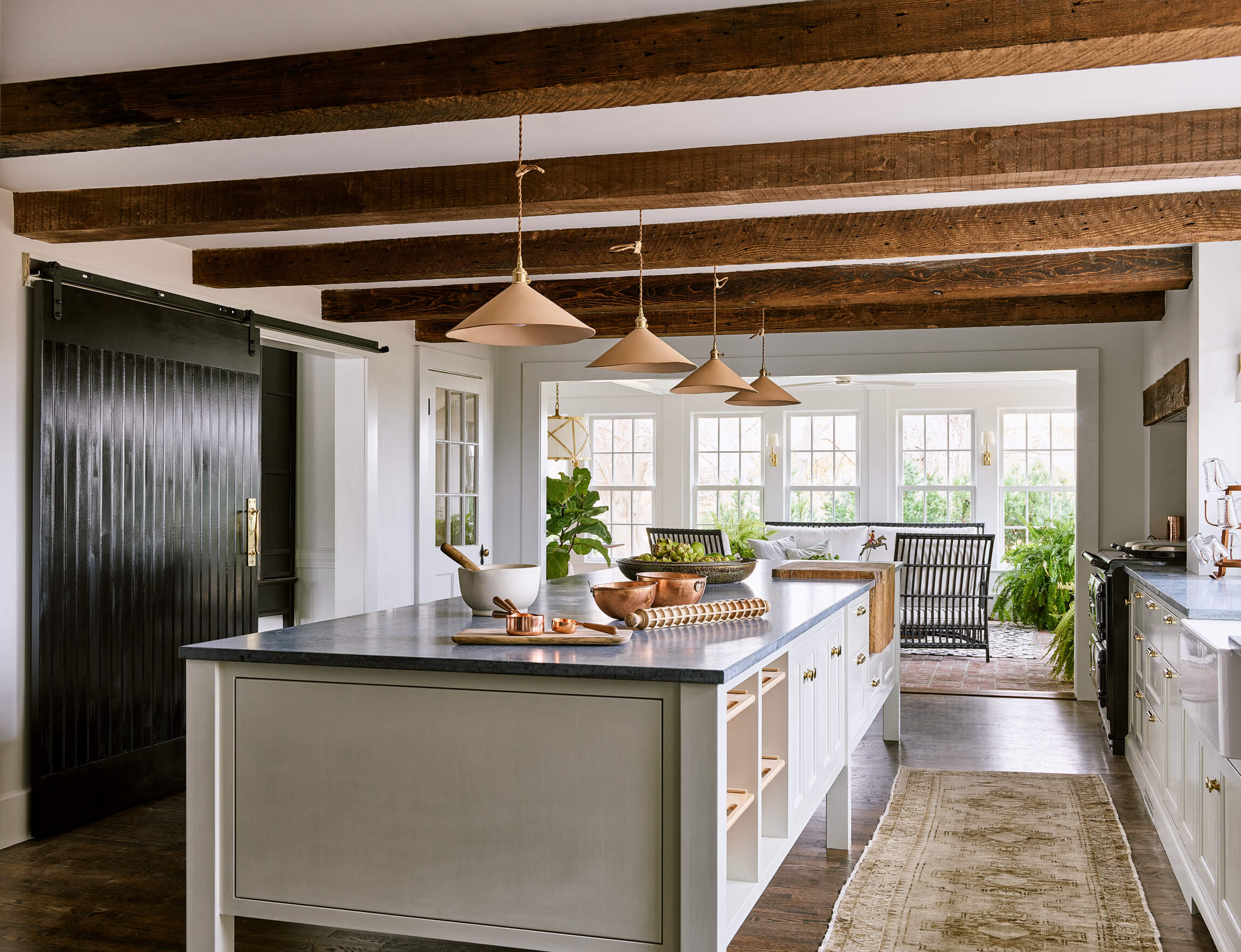 This HGTV Farmhouse Fixer project was the renovation of a 100 year old ++ horse farm in Ipswich. Our focus was creating a European country kitchen that would be great for entertaining and take in views of the farm. A wall was taken down between the Kitchen and the 3 Season porch to capture that space as interior and a discovery after demo lead to vaulting the ceiling in part of the Sun Room.