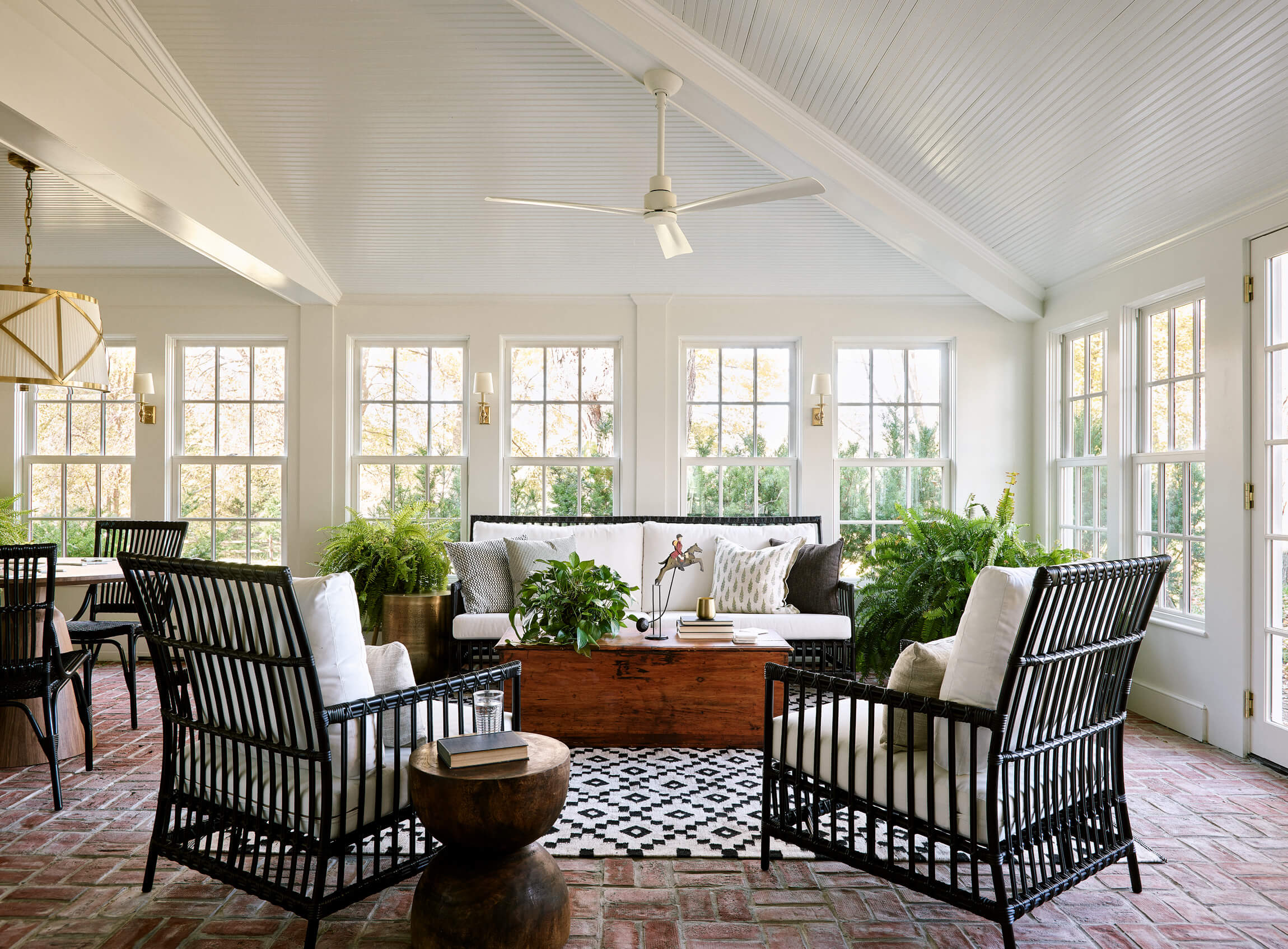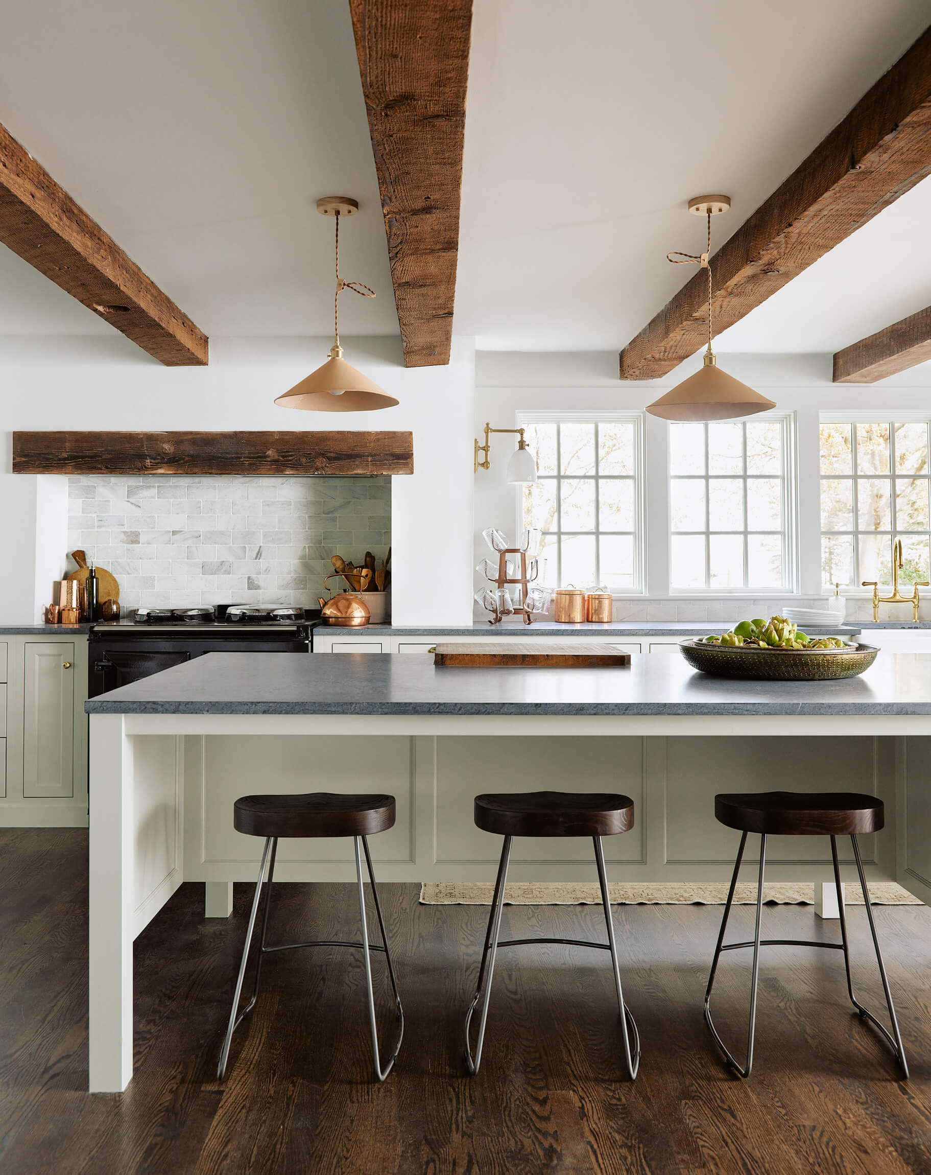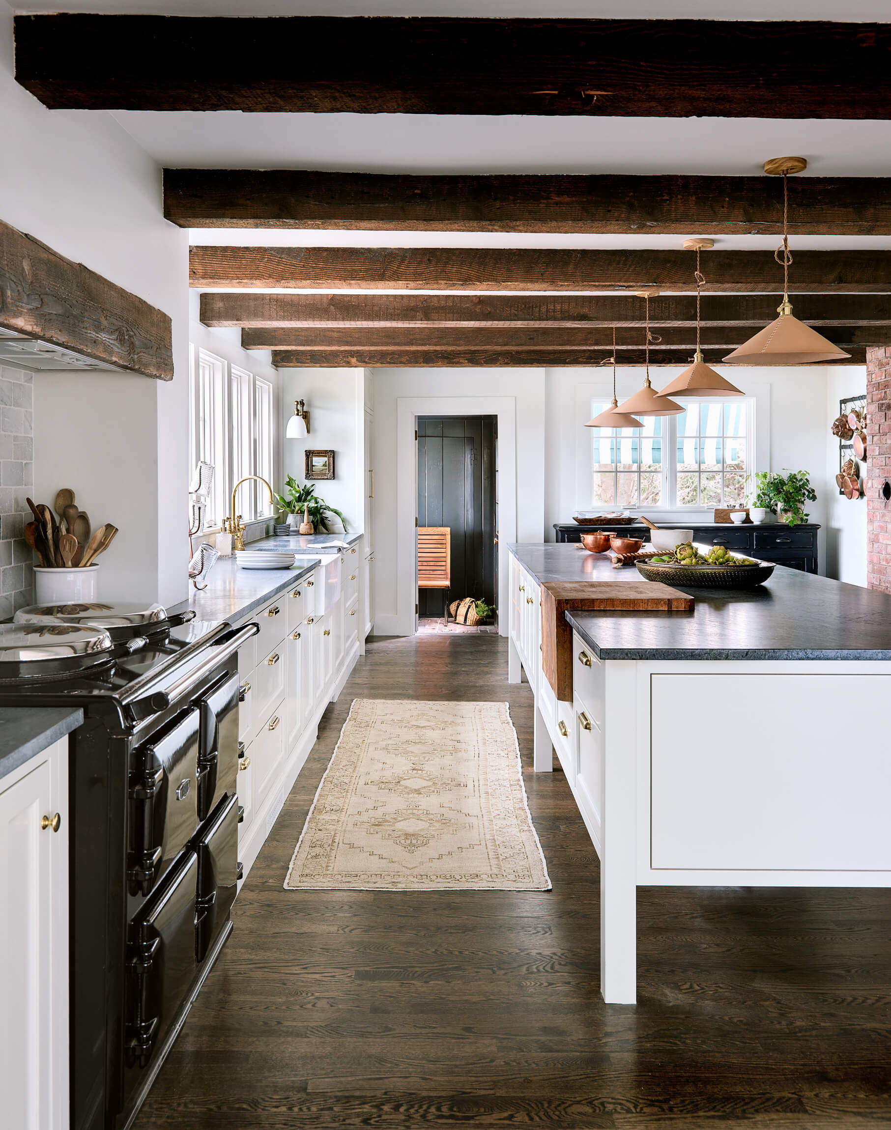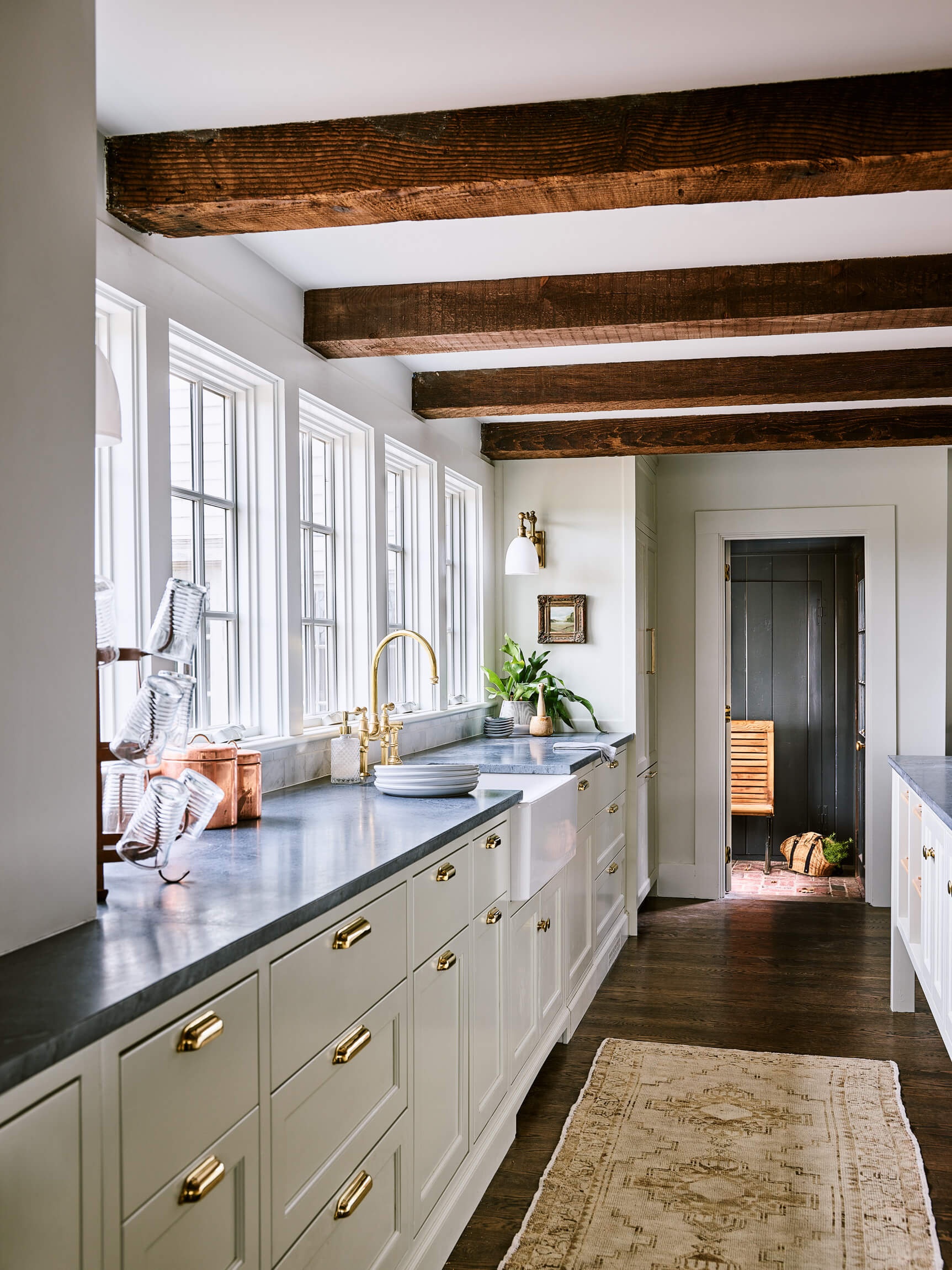 This HGTV Farmhouse Fixer project was the renovation of a 100 year old ++ horse farm in Ipswich. Our focus was creating a European country kitchen that would be great for entertaining and take in views of the farm. A wall was taken down between the Kitchen and the 3 Season porch to capture that space as interior and a discovery after demo lead to vaulting the ceiling in part of the Sun Room.