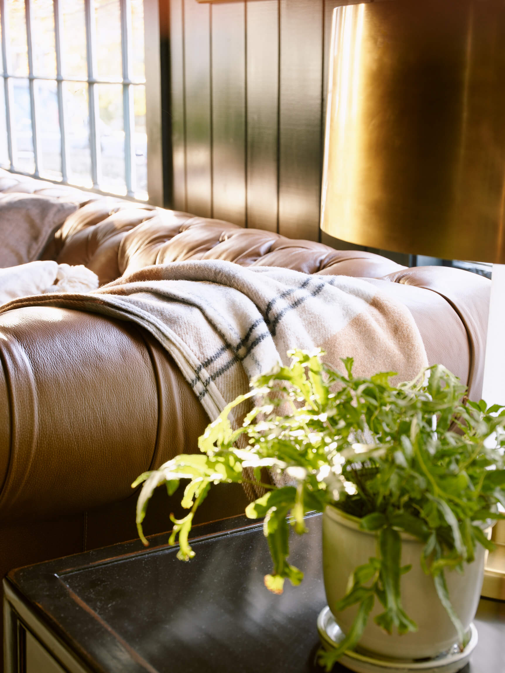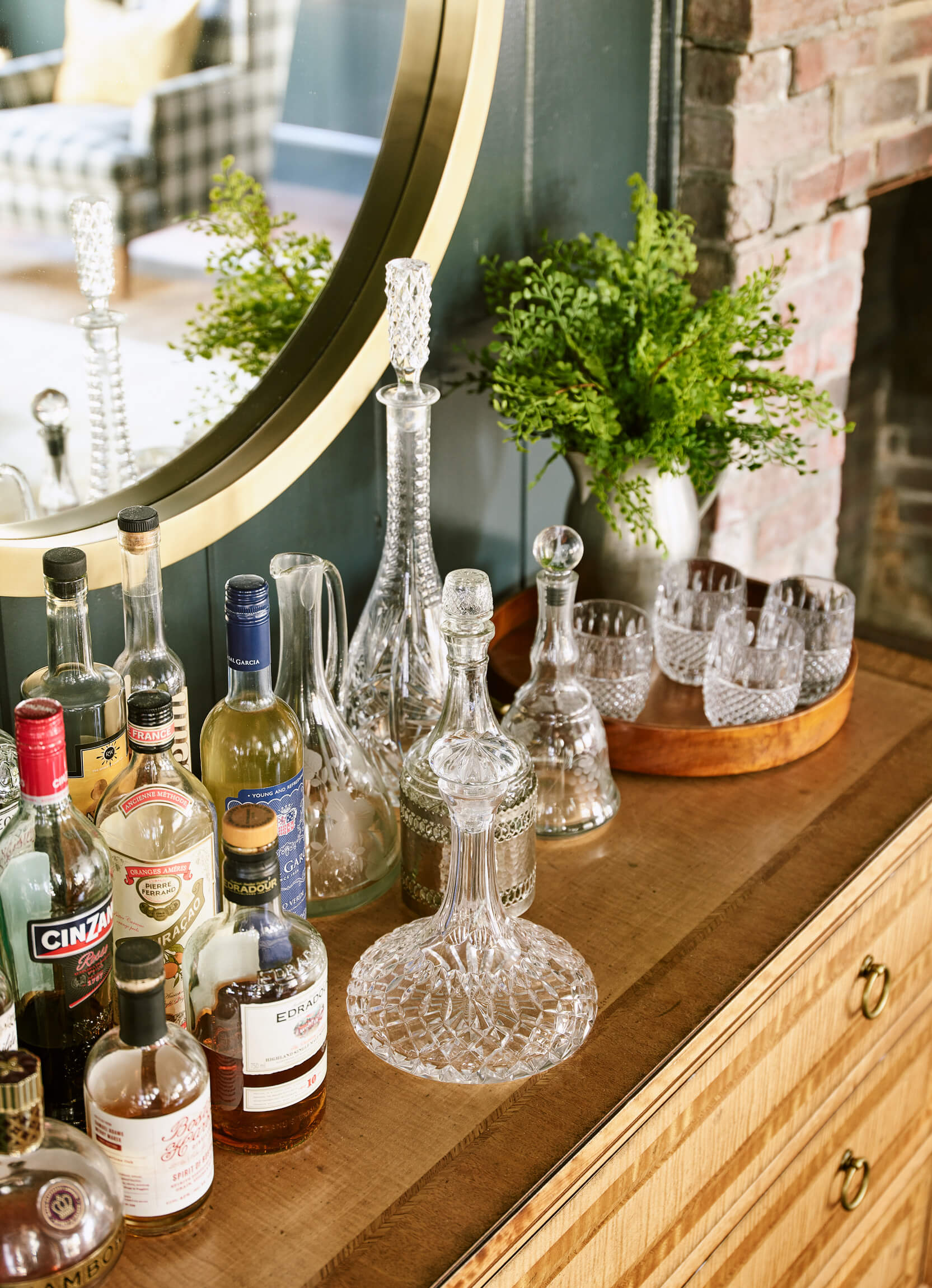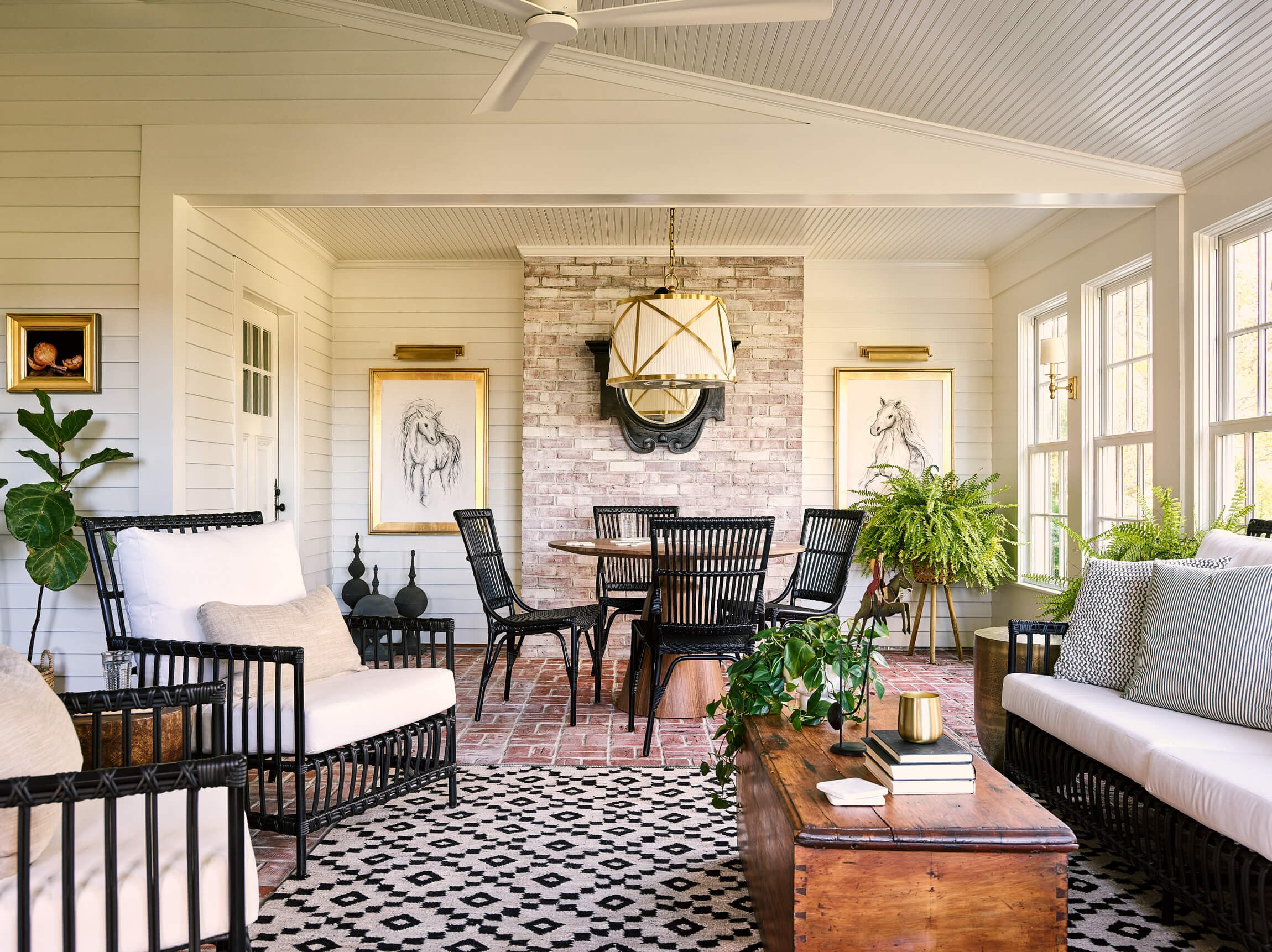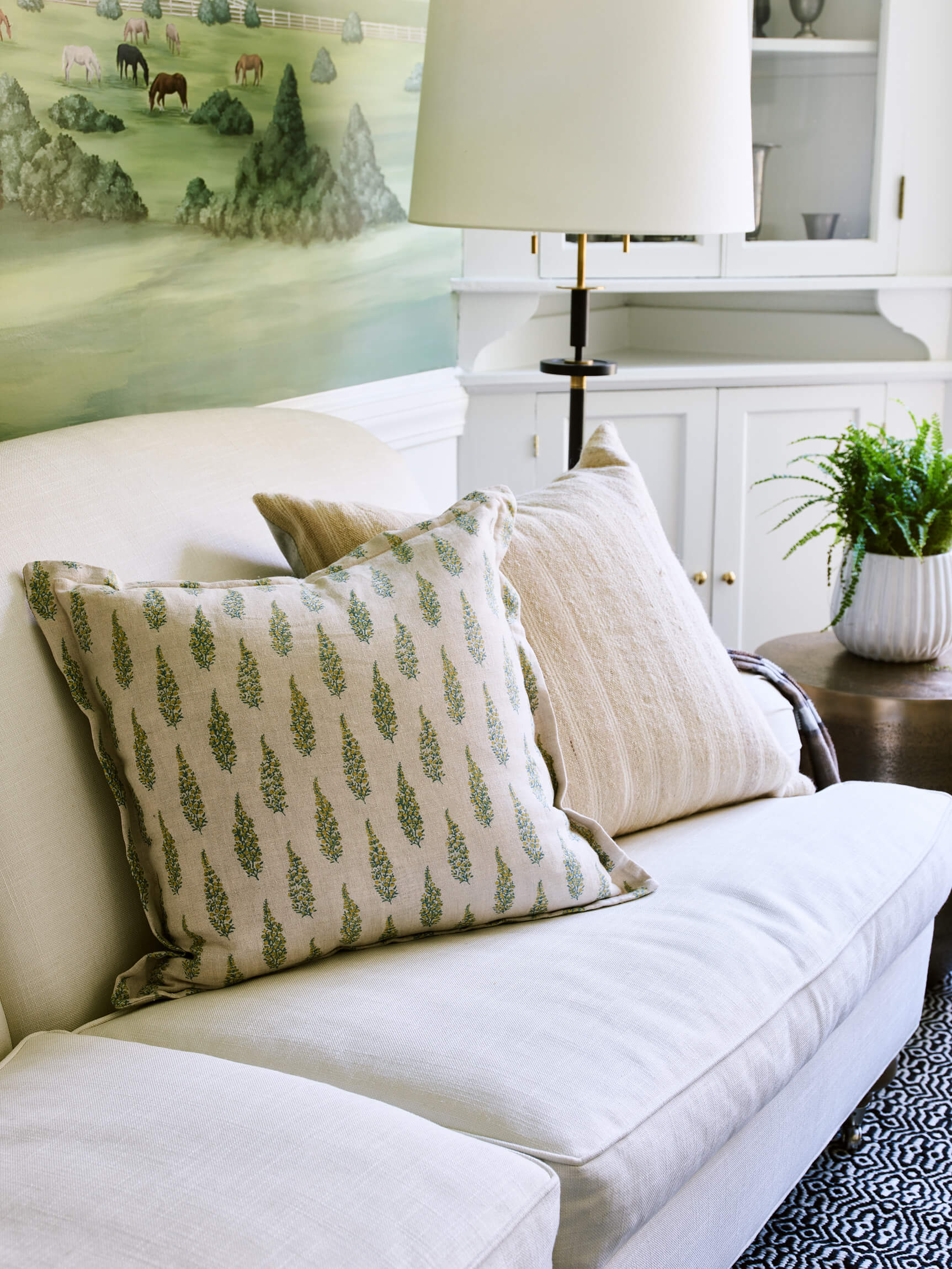 The Living – Dining space had minimal renovation but the addition of a custom mural of the property adds a touch of history. The Club Room is transformed with a moody green paint and a whole layer of lighting.